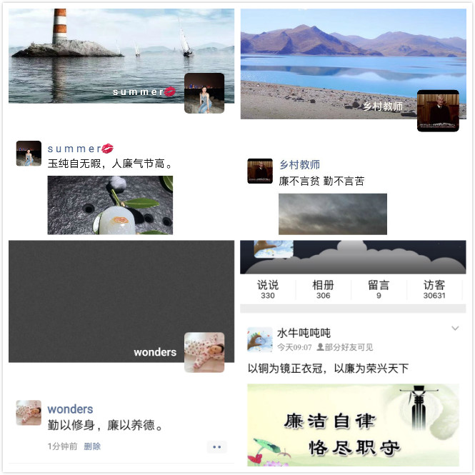 师生通过观看党风廉政微视频《榜样》,感悟树立廉政家风和正面榜样的重要性,认识反腐倡廉、防微杜渐工作时刻不能懈怠。写下廉政教育座右铭,发表朋友圈、QQ说说,是师生党员对廉政教育的深刻认识和庄严承诺。员工临时党支部书记王德志老师通过给员工党员上廉政教育专题党课,学习习近平总书记关于党风廉政建设和反腐败斗争重要讲话,教育广老员工党员在平时的学习、工作和生活中要讲政治知敬畏守廉洁,严守底线永葆清廉。