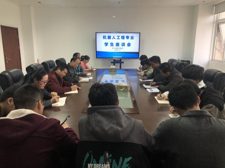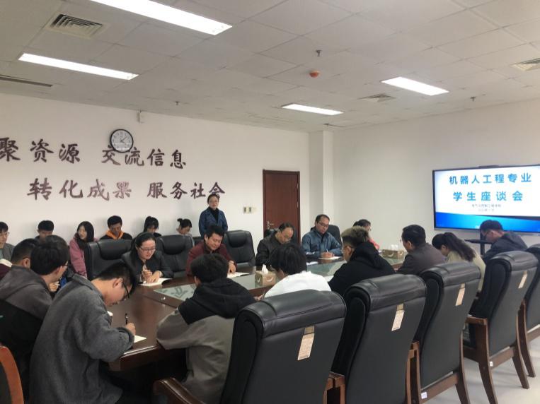 近日,机器人工程专业期中教学座谈会在敬业楼1402会议室召开,会议由机器人工程教研室主任张建化主持,公司副经理王树臣、韩成春、副书记孟凡婷、机器人实验室中心主任樊兆峰、教务科负责人佟恒乐、员工科负责人王德志及教研室全体教师参会。