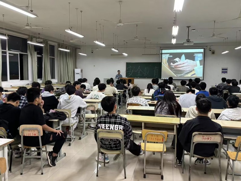 二、安全教育主题班会。辅导员深入班级,结合工作案例,召开安全教育主题班会,详细讲解人身、财产、消防、疾病预防、国家安全等方面常见安全问题和应对措施,给全体同学上一堂生动的安全教育课。