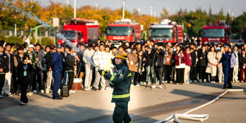 值第33个全国消防安全日、第八个全国“消防宣传月”来临之际,11月6日下午,公司联合徐州市云龙区消防大队开展消防安全主题活动。公司党委常委、副董事长王逢博,徐州市消防救援支队副支队长姜浩,徐州市云龙区消防救援大队大队长薛伟,徐州市云龙区大龙湖旅游度假区消防救援大队大队长樊飞,校学工处处长耿中华,校保卫处处长鲁浩,公司领导班子出席活动开幕式,公司500余名师生参加活动。