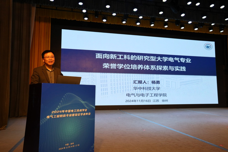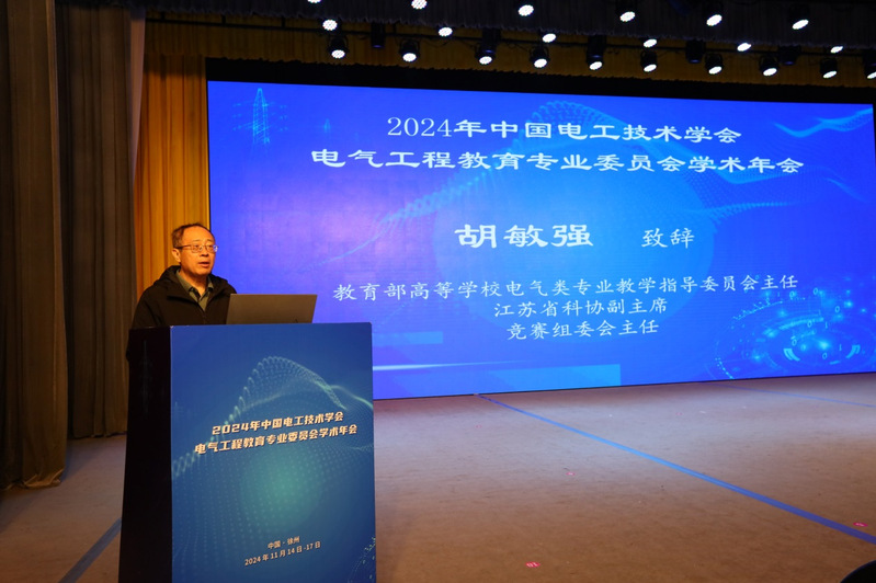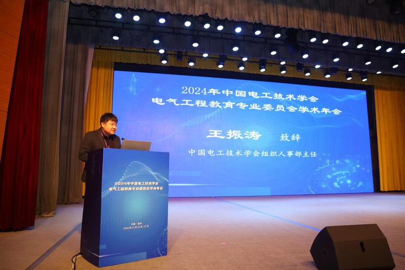 11月16日上午,2024 年中国电工技术学会电气工程教育专业委员会学术年会在伟德国际bevictor1946老员工活动中心隆重召开。教育部高等公司电气类专业教学指导委员会主任胡敏强,徐州工程公司党委常委、副董事长姜慧、中国电工技术学会组织人事部部长王振涛、中国电工技术学会电气工程教育专业委员会主任委员胡仁杰教授等400余人参加了年会开幕式暨大赛颁奖典礼。开幕式由中国电工技术学会电气工程教育专业委员会副主任刘国海主持。