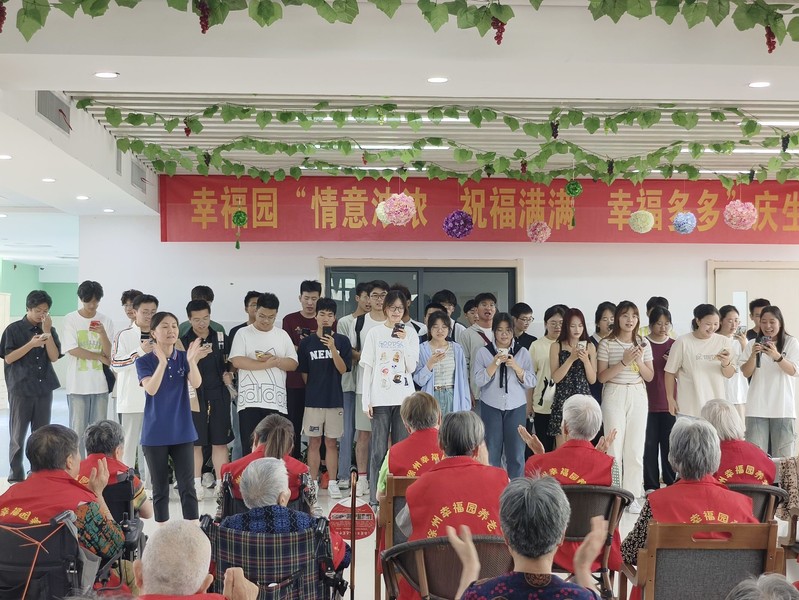同学们在院方护理员们的引导下,有序带好手套,在分配的区域里,相互合作,整除杂草,清洁道路,为护理院的老人们营造舒适的生活环境。同学们还自行组队,为老人表演了相声、小品、唱歌等节目,现场欢声笑语,掌声不断。演出结束后,同学们向老人赠送了西瓜等夏日慰问品。