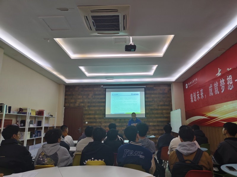 随后,王刚教授带来了精彩的职业生涯规划讲座。他从产业发展前沿、岗位技能需求、知识储备要求三个方面告诉大家如何去安排学习,规划未来。具体分享了徐工集团的产品及应用场景,并结合自身成长经历,讲述了部分工作岗位需要的知识和技能,包括机械设计、电气系统设计、软件开发等,用生动的案例说明广泛学习、不断拓展知识面、努力创新的重要性。他希望同学们要多角度看问题,找到自己的潜力和优势。讲座结束后,王刚教授和同学们进行了互动,对同学们关注的求职过程中的面试、笔试注意事项,王教授希望同学们在应聘前,要思考企业需要什么,要将自己的论文、专利、参加实践创新项目等优势和亮点充分展示出来,提高应聘成功率。